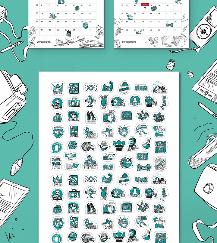 цвете банка. Мы отрисовали иллюстрированные стикеры на абсолютно разные темы,<br>