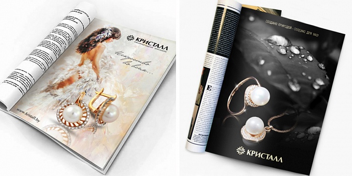 Рекламное агентство полного цикла предоставляет возможность создания модулей в издания, позволяющее прорекламировать Вашу продукцию в Гомеле, Минске, Москве. Студия дизайна "Концепт" изготовила рекламный модуль для ОАО "Гомельское ПО Кристалл". Что может быть роскошнее жемчуга? Только жемчуг в драгоценной огранке! Здесь излишне буйство красок. Строгий и лаконичный дизайн рекламного модуля в чёрно-белой цветовой гамме лишь подчёркивает притягательную магию дорогих украшений.