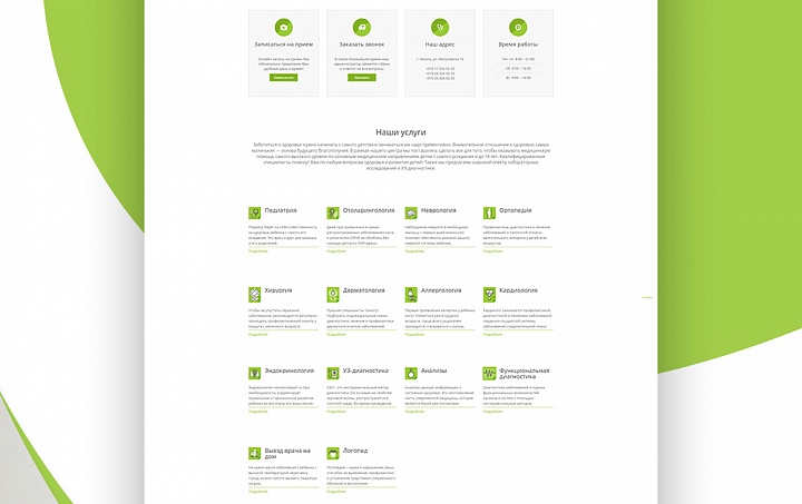 Дизайн сайта выполнен в спокойных светло-зеленых тонах, которые отвечают логотипу<br>