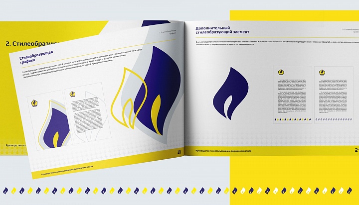 С учетом исходных данных, дизайнерами ООО «Концептуальная реклама» была разработана и внедрена стилеобразующая графика: минималистичный элемент «пламя», повторяющий эмблему логотипа, который также может использоваться в качестве дополнительного оформления в виде полосного орнамента, например, на документах при цветной печати.