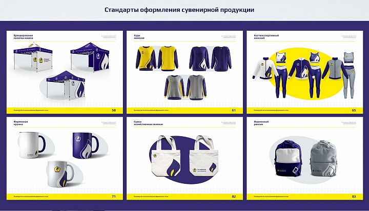 Брендирование фирменной одежды (худи, футболка, спортивный костюм, носки) и спецодежды, разработка дизайна открыток, канцелярских принадлежностей, палатки-навеса, зонта, флешки, сервиза, настенных часов, визитницы, пледа, автомобильной подушки, портфеля, рюкзака и сумок – проект охватил оформление самых разнообразных носителей корпоративной айдентики. Отдельно необходимо отметить неповторимый индивидуальный стиль, который приобрели офисные помещения после дизайнерского брендирования, подбора цветовой раскладки стен, оформления вывесок и оконных стекол.