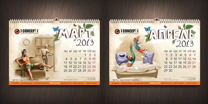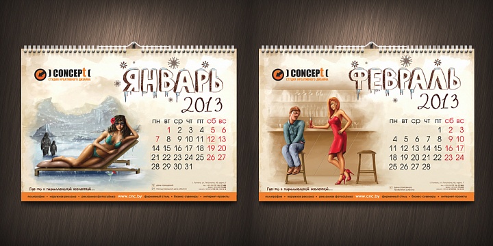 a:2:{s:4:"TEXT";s:798:"Календарь на 2013 год, созданный в рекламном агентстве "Концепт" — это копилка ценных идей и неожиданных решений.Креативное мышление и богатая фантазия позволяют рекламному агентству "Концепт" из года в год выделяться оригинальностью и непревзойдённым чувством юмора. Каждый месяц нашего календаря — это своя собственная история, в которой действуют обычные персонажи, но в совершенно необычных и непривычных для нас образах.
