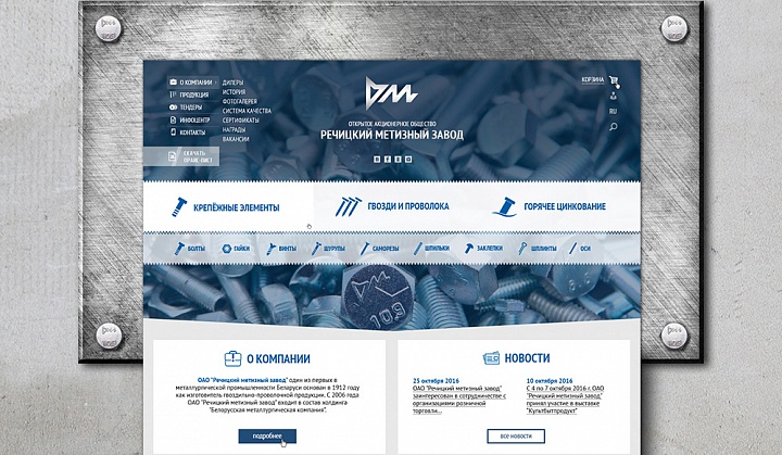 создать полноценный корпоративный сайт для Речицкого метизного завода для улучшения имиджа компании