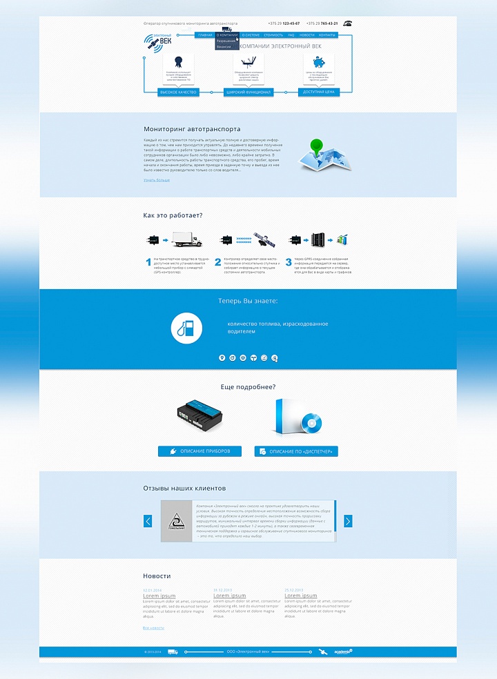 Разработка корпоративного сайта для оператора спутникового мониторинга автотранспорта